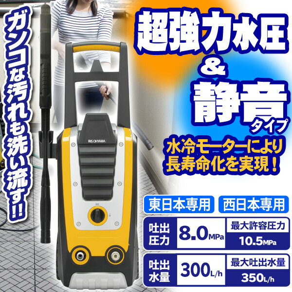 「超強力水圧」+「静音タイプ」耐水性に優れた水冷モーターにより長寿命化を実現!家庭用高圧洗浄機8.0MPaクラスNo.1の静音性(アイリスオーヤマ比)自吸水機能付き。