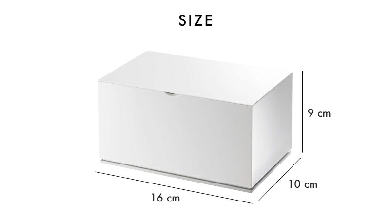 ■Spec -商品詳細- サイズ 約 幅16 × 奥行き10 × 高さ9 cm 重 量 約 260 g 素 材 容器・蓋/ABS樹脂、底/エラストマー 耐荷重 約 1 kg カラー ホワイト 入 数 1個 ※ピンク、ブラックは生産終了につき完売しました。